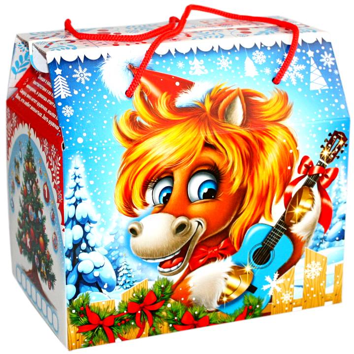 Детский новогодний подарок в картонной упаковке весом 1000 грамм
